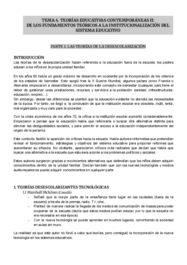 Temas del 1 al 4 de teorías e instituciones contemporáneas de la educación