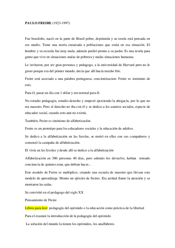 He publicado nuevos apuntes de 1º Teorías, Instituciones Educativas y Organización del Centro: PAULO FREIRE.pdf
