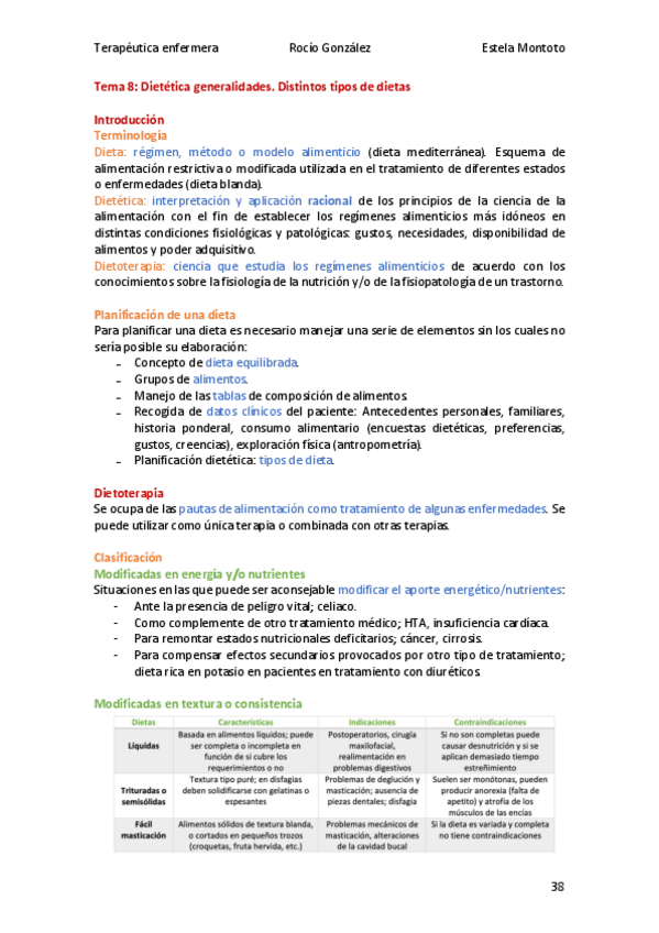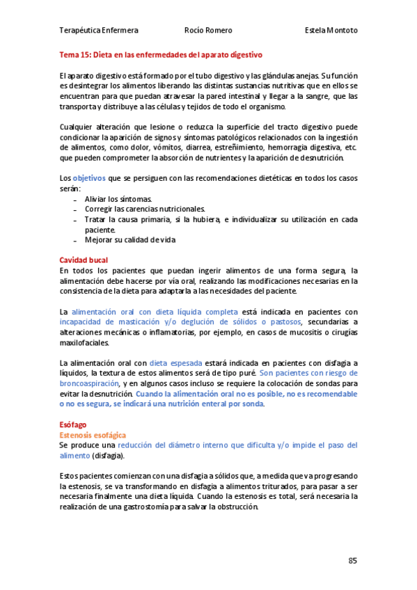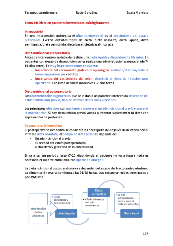 Terapéutica Enfermera, Alimentación y Cuidados