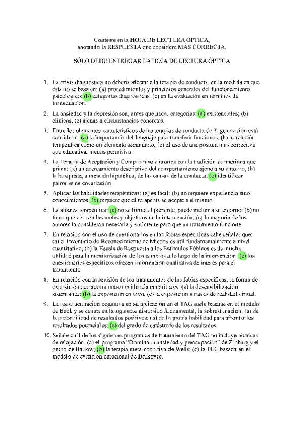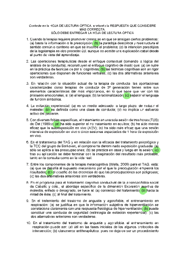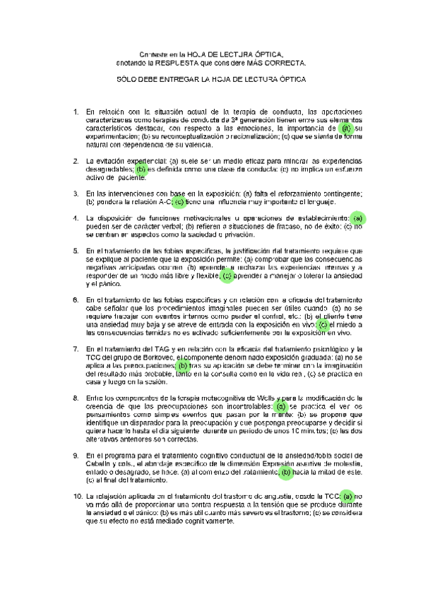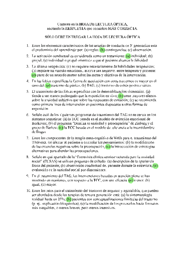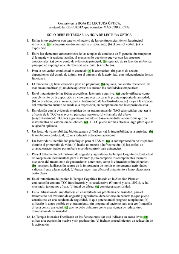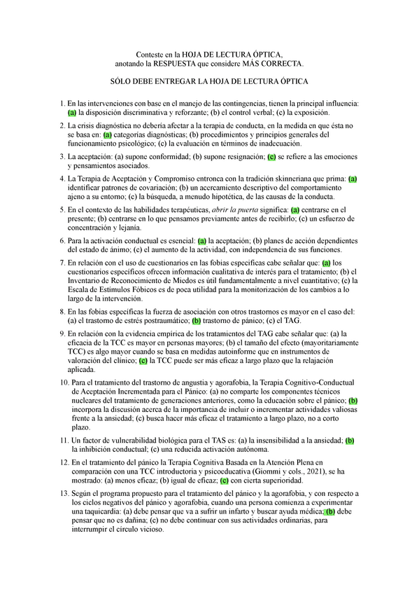 EXAMENES RESUELTOS AÑO 2024-2025 TERAPIA COGNITIVO CONDUCTUAL