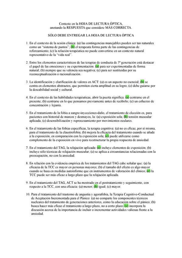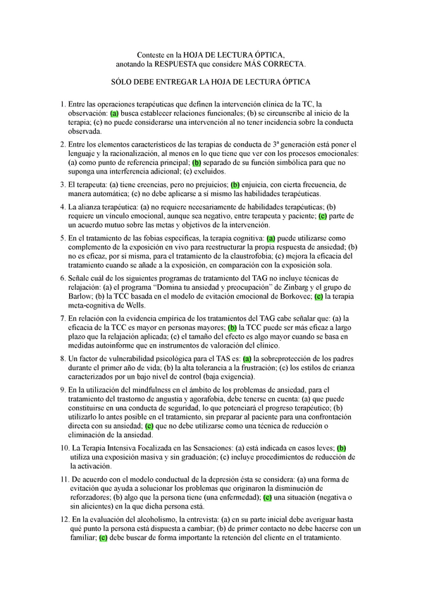 EXAMENES RESUELTOS AÑO 2021-2022 TERAPIA COGNITIVO CONDUCTUAL
