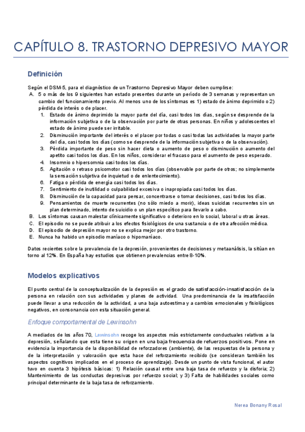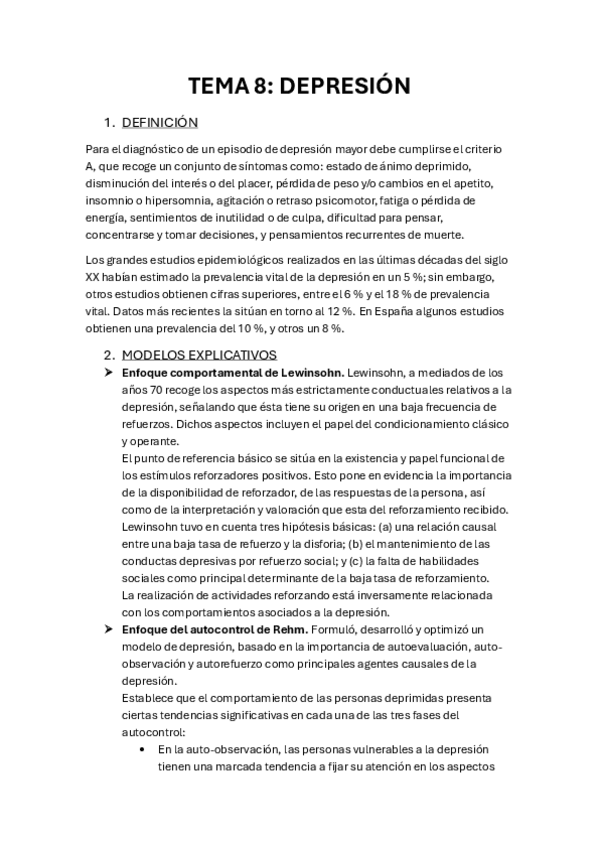 He publicado nuevos apuntes de 4º Terapia Cognitivo Conductual: T8-DEPRESION.pdf