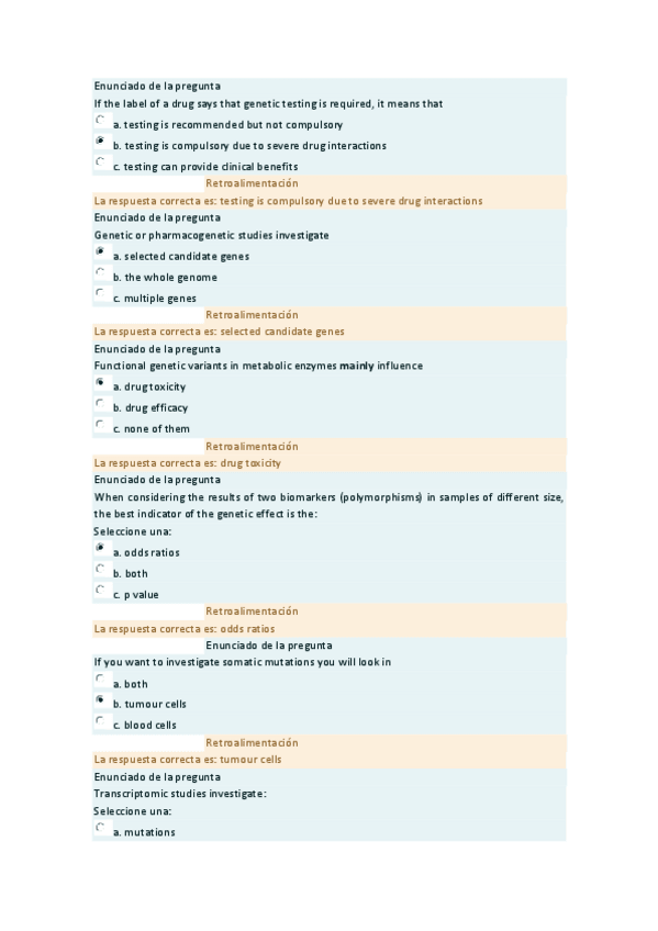 He publicado nuevos examenes de 4º Teràpia individualitzada (farmacogenòmica): Preguntas-examen-parcial-pharmacogenomics.pdf