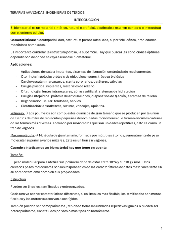 He publicado nuevos apuntes de 4º TERAPIAS AVANZADAS: BLOQUE III - INGENIERÍA DE TEJIDOS