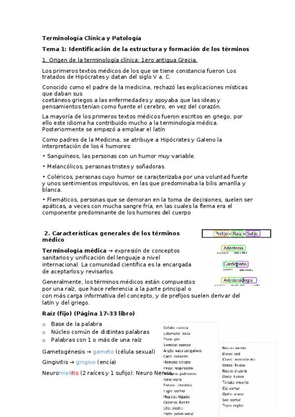 Resumen de "Terminología clínica y patológica" SUPER completo, con fórmulas, esquemas e imágenes.