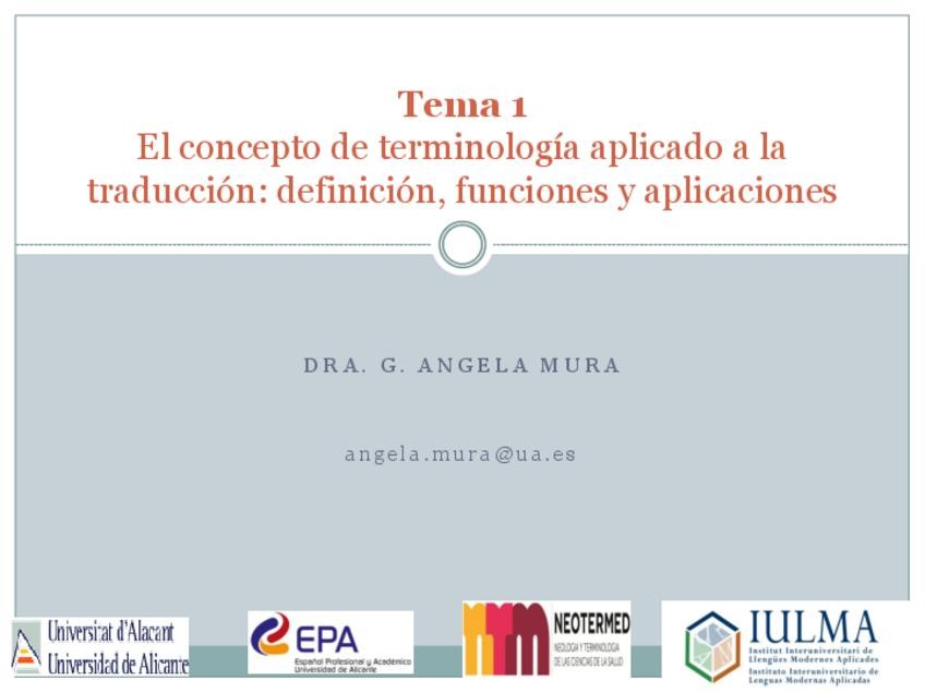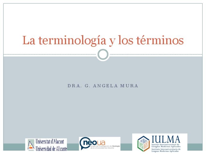 He publicado nuevos apuntes de 1º TERMINOLOGÍA Y DOCUMENTACIÓN APLICADAS A LA TRADUCCIÓN: Presentacion-Tema1Terminologia.pdf