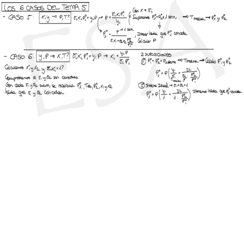 Los 6 Casos posibles en el cálculo de datos de equilibrio líquido-vapor