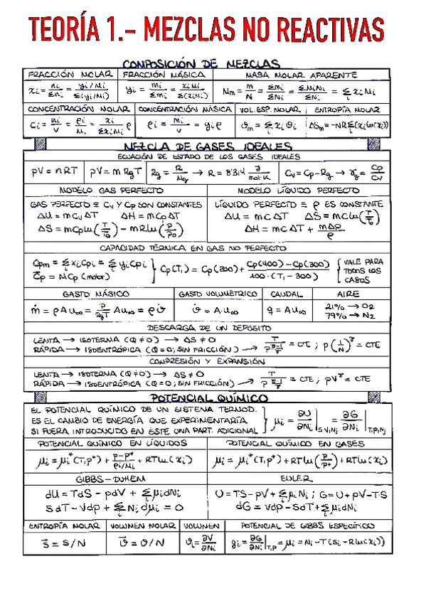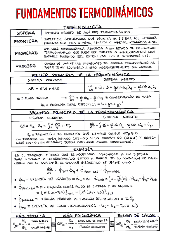 Resumenes/formularios para hacer los problemas de TERMODINAMICA APLICADA por partes. Te los puedes llevar impresos al examen.