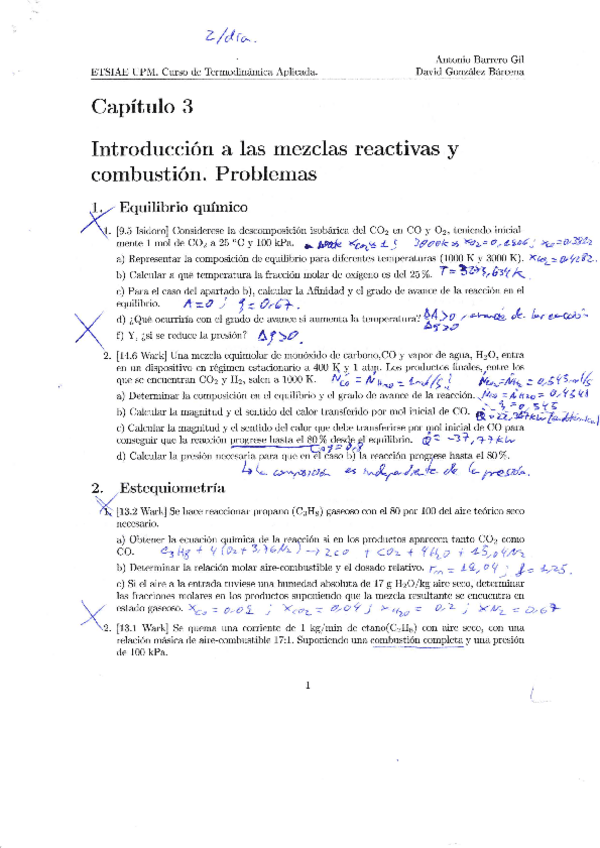 He publicado nuevos ejercicios de 3º Termodinámica Aplicada: PEI 2. Problemas resueltos: 2.2 Estequiometría