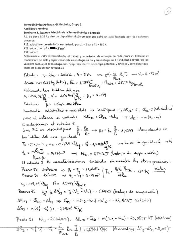 Ejercicios Resueltos del Tema 3 de Termodinámica Aplicada del 1ºParcial.Profesor: Damian