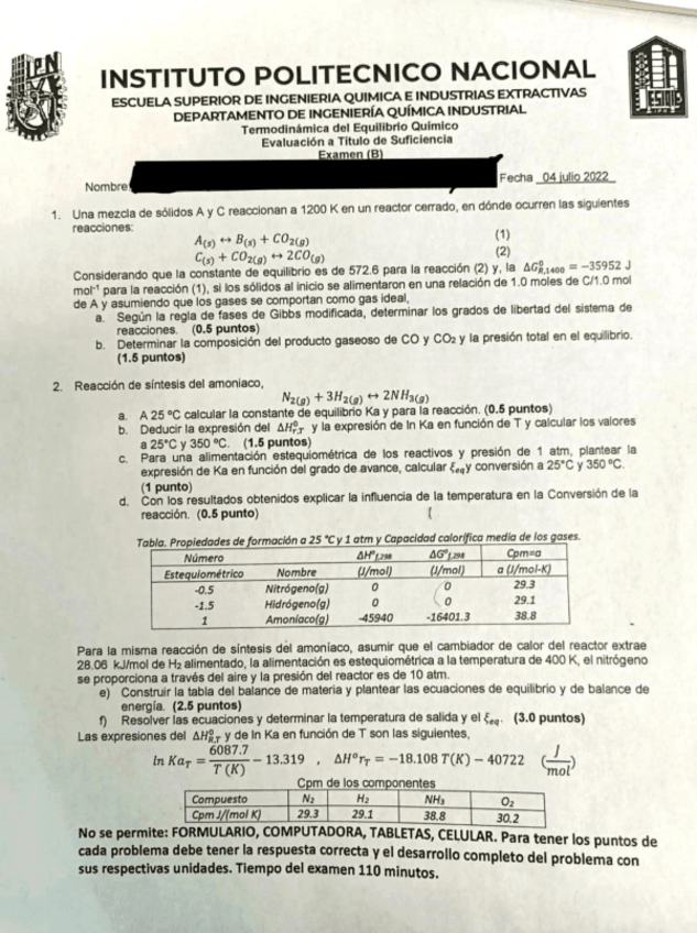 He publicado nuevos examenes de 2º Termodinámica del equilibrio químico: ETS-Termo-4-Julio-2022-HMO.pdf