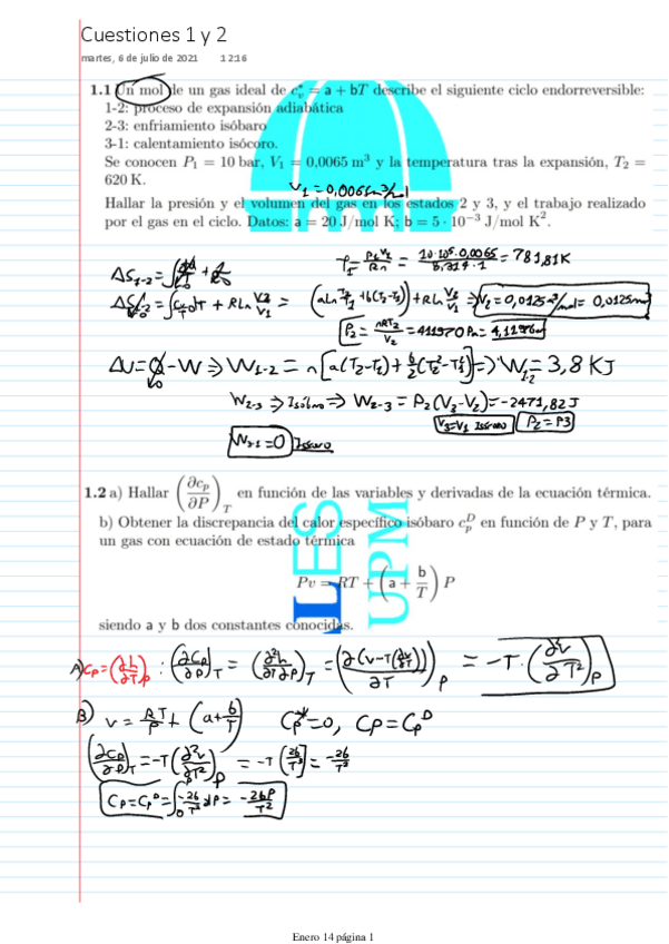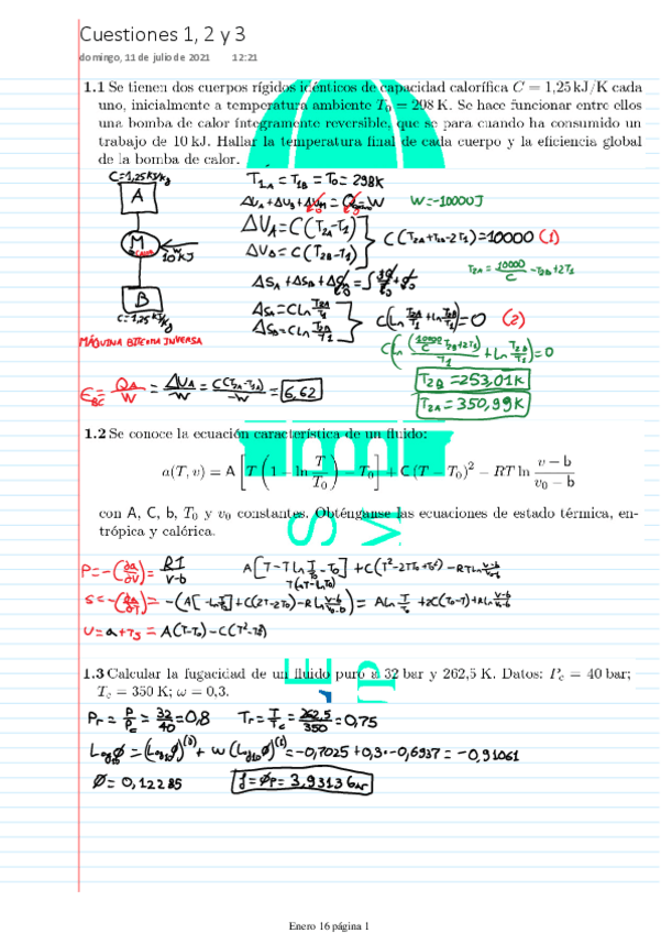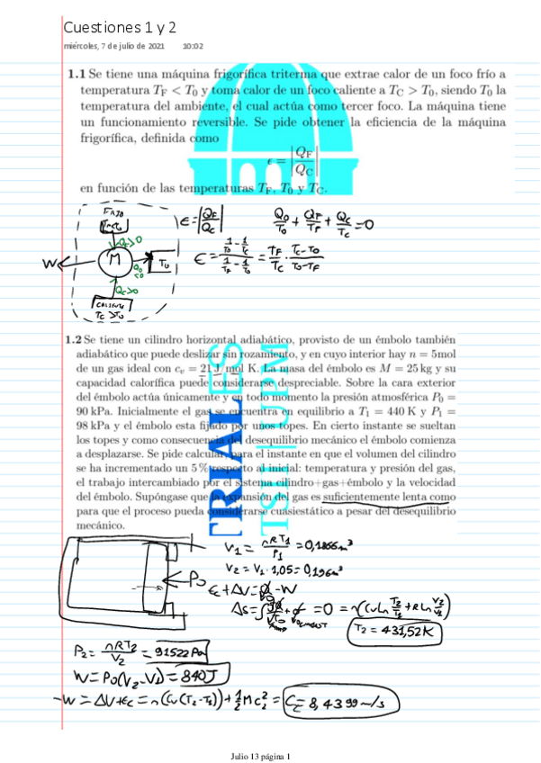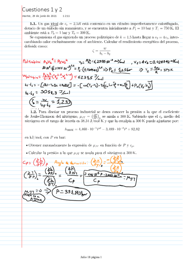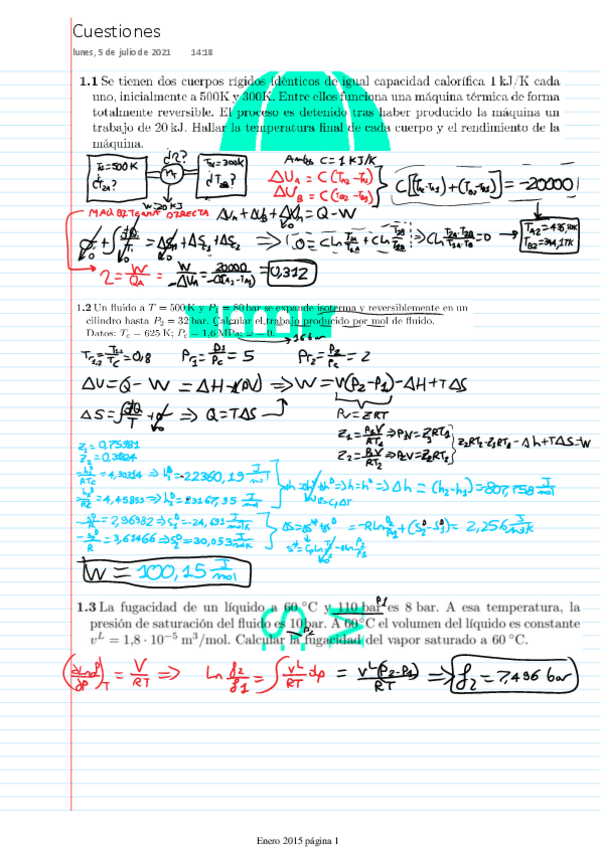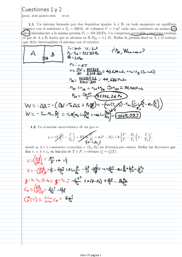 Exámenes resueltos Termodinámica I