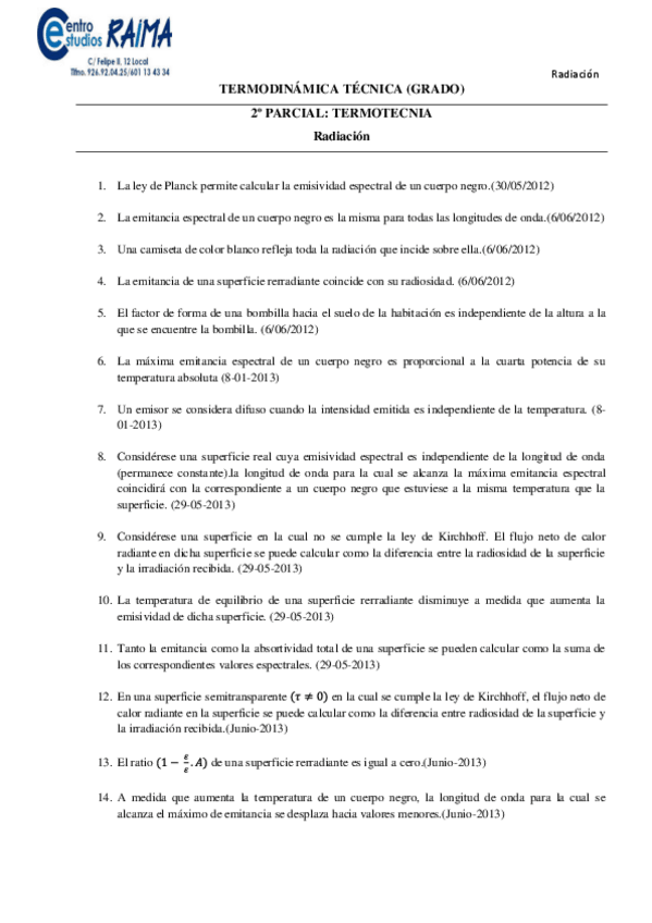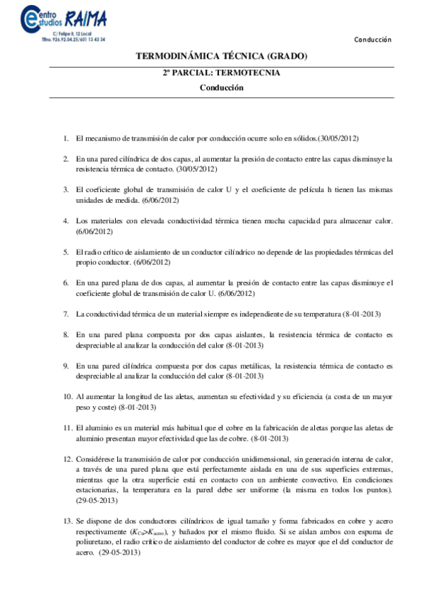 He publicado nuevos examenes de 3º Termodinámica Técnica: Examenes por temas