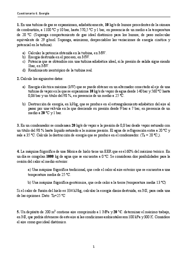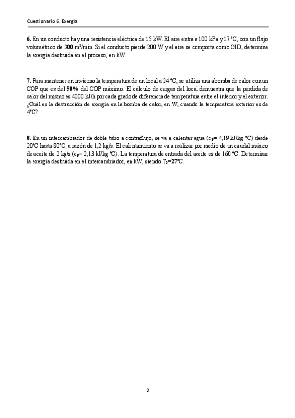 He publicado nuevos ejercicios de 2º Termodinámica Técnica: Entregable-Exergia-I.pdf