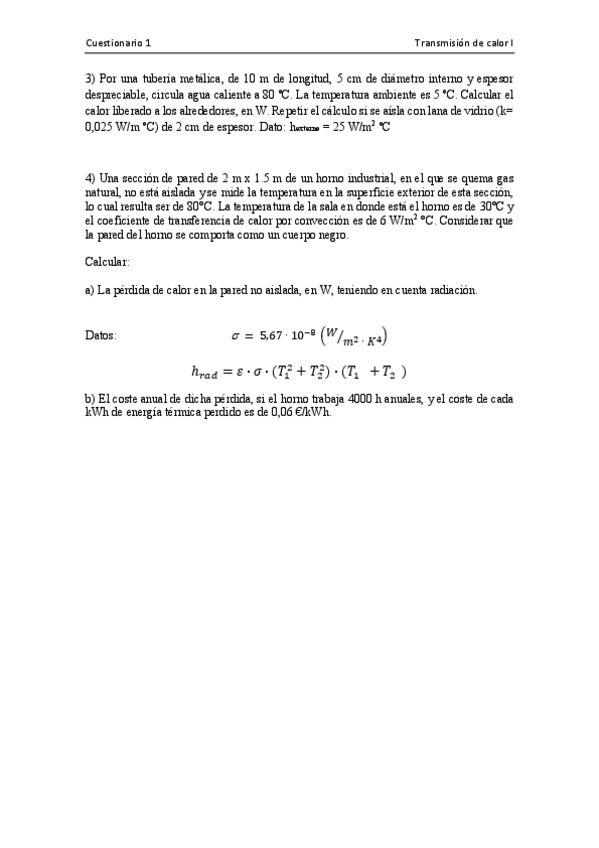 He publicado nuevos ejercicios de 2º Termodinámica Técnica: Ejerc-T1-Transm-de-Calor.pdf