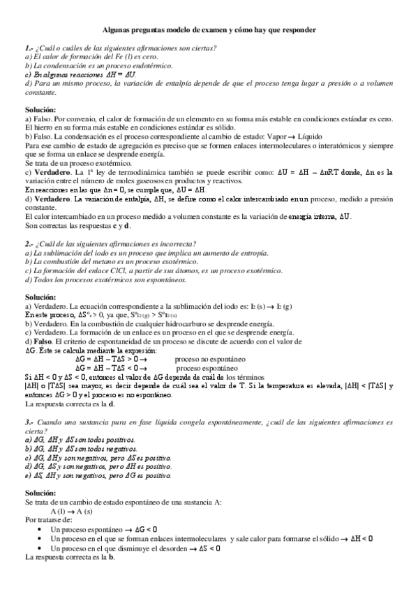 Examenes Termodinamica y cinética químicas