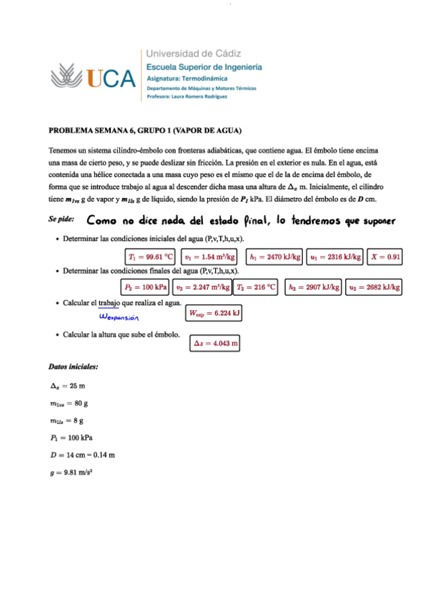 Seminario 1 termodinámica completo. Ejercicios de los dos grupos