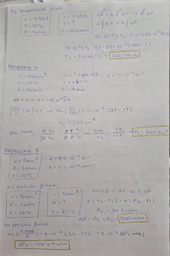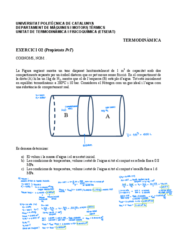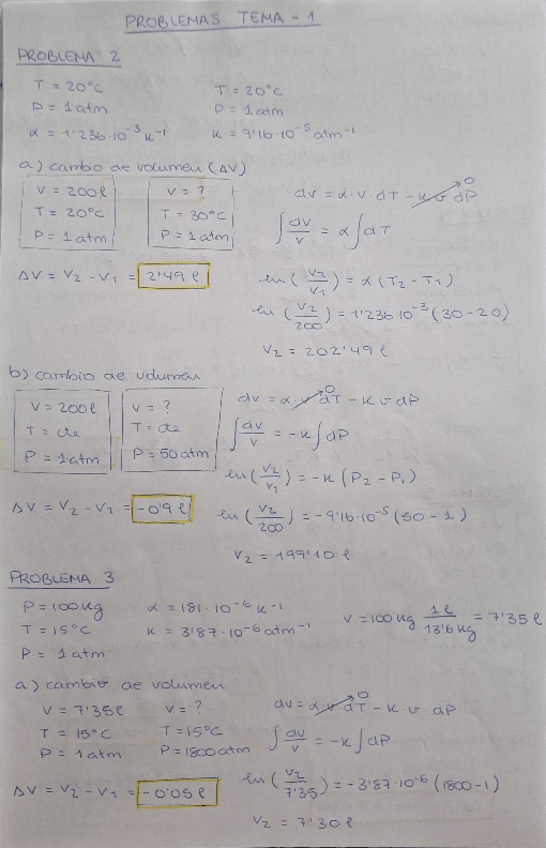 Ejercicios resueltos con todo el procedimiento del contenido 1 de la asignatura termodinámica.