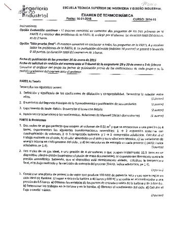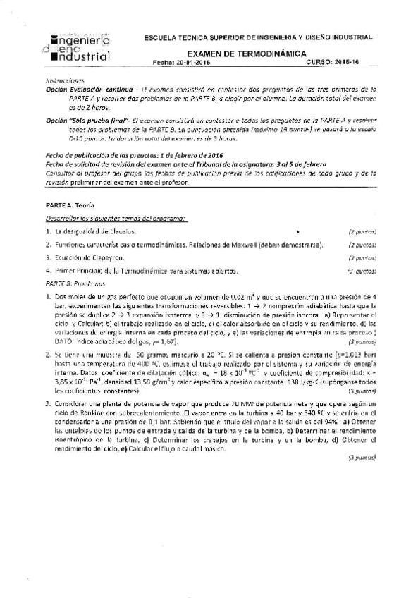 He publicado nuevos examenes de 2º Termodinámica: Primer parcial