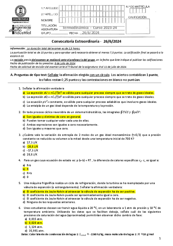 He publicado nuevos examenes de 2º Termodinámica: Soluciones-examen-Julio-2024.pdf