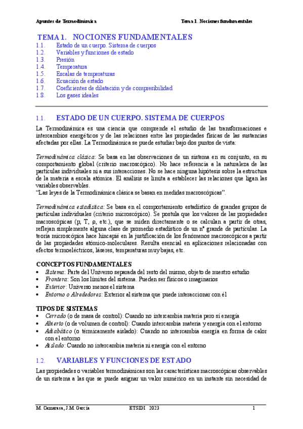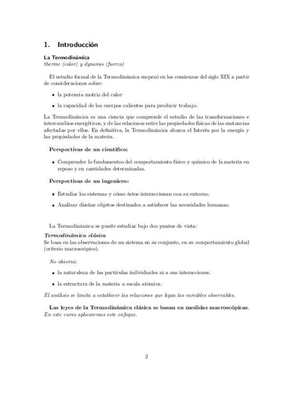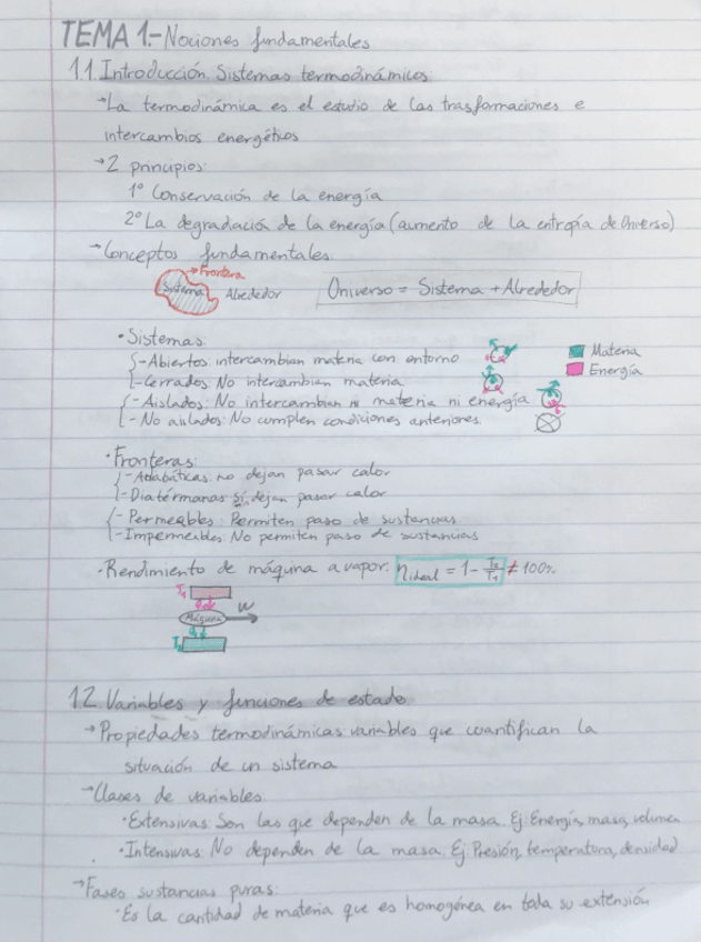 Breve resumen de los conceptos tratados en clase de termodinámica, los 6 temas