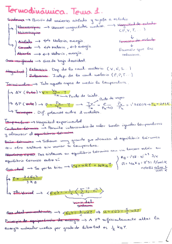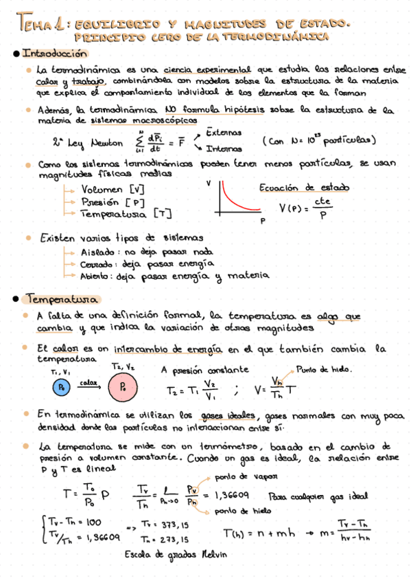 Apuntes del tema 1 de termodinámica: equilibrio, magnitudes de estado y principio cero