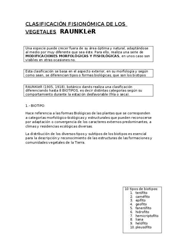Apuntes de la parte del tema 2 sobre Raunkiær