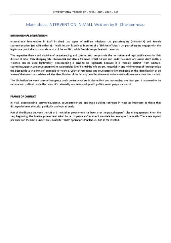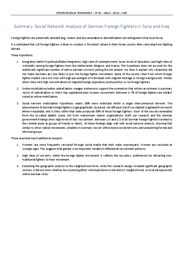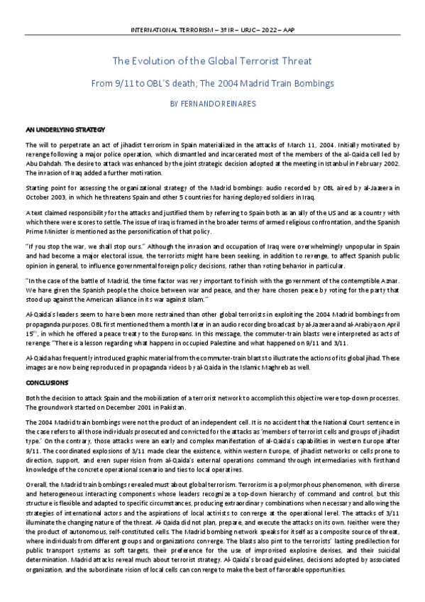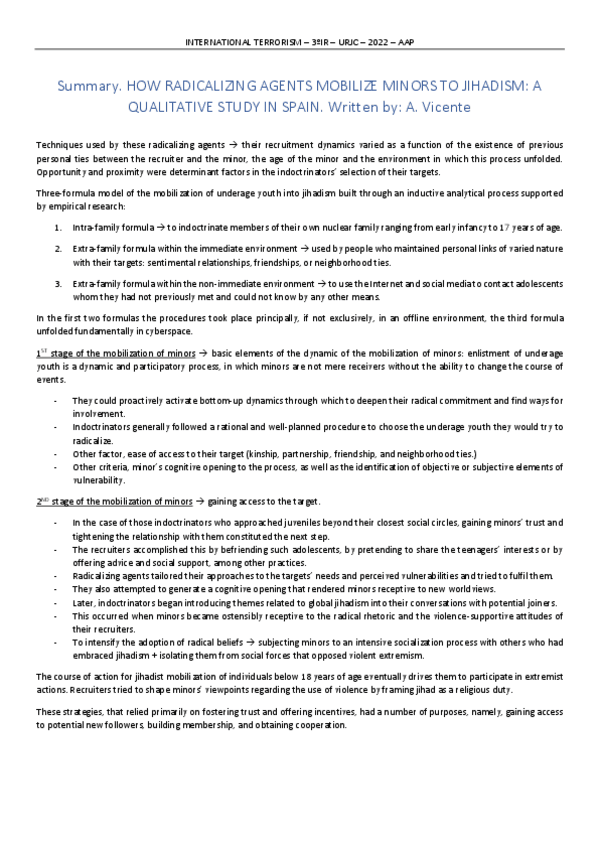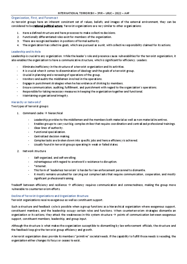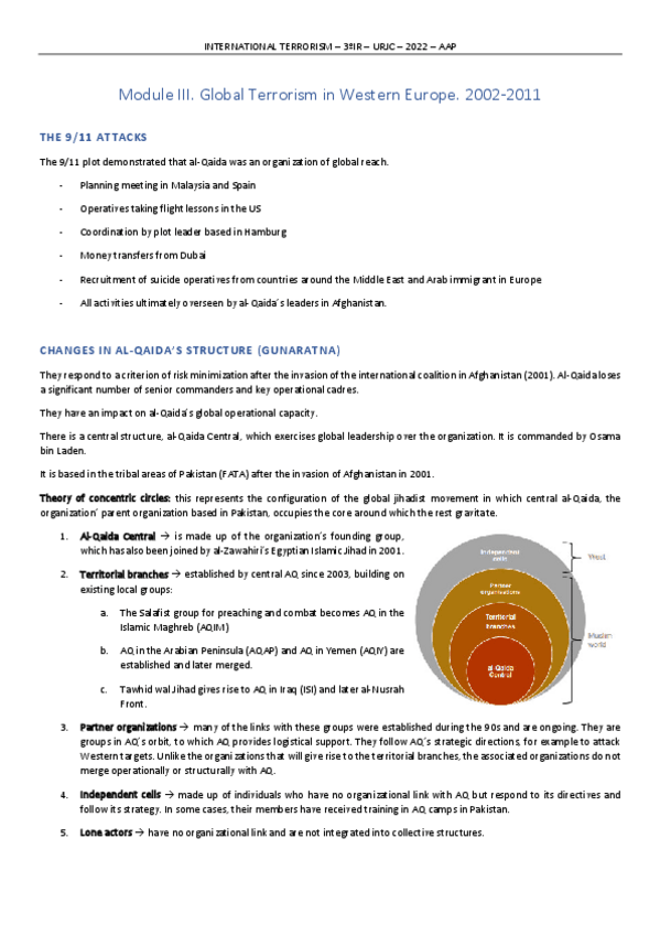Apuntes Asignatura International Terrorismo 3º Relaciones Internacionales Vicálvaro en Inglés.