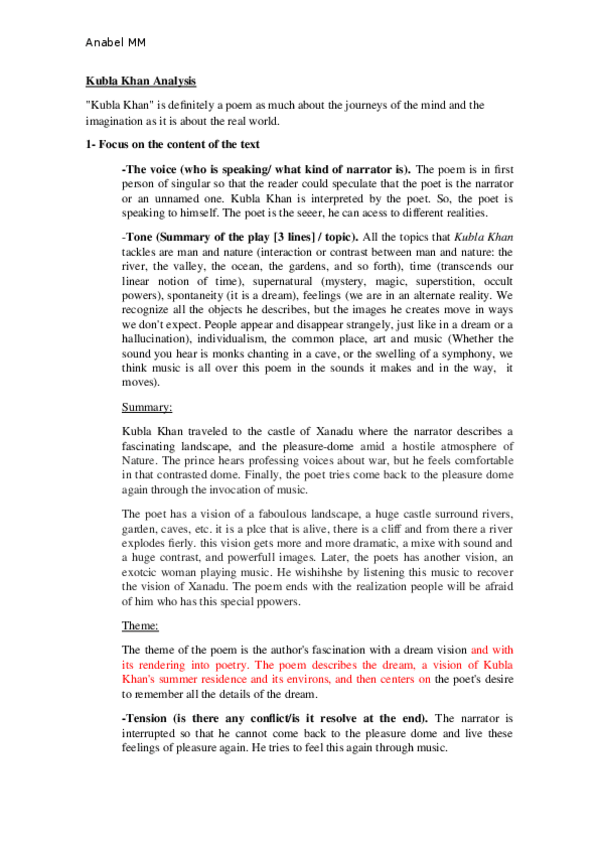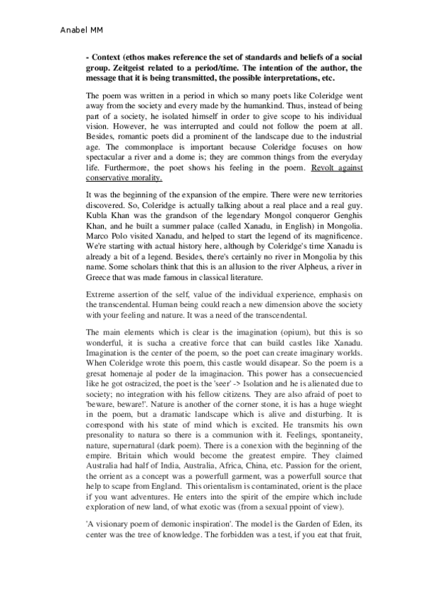 He publicado nuevos apuntes de 3º Textos de Literatura Inglesa: Siglos XIX y XX: Kubla Khan Analysis.docx