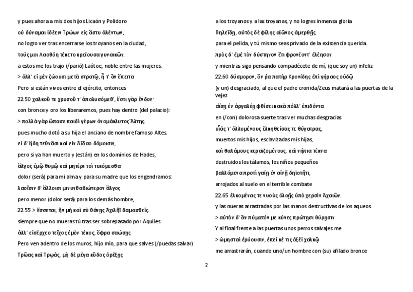 He publicado nuevos apuntes de 3º Textos Griegos III: Canto 22 traducción sin diccionario