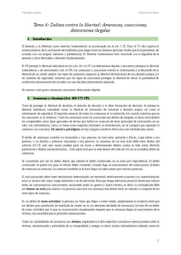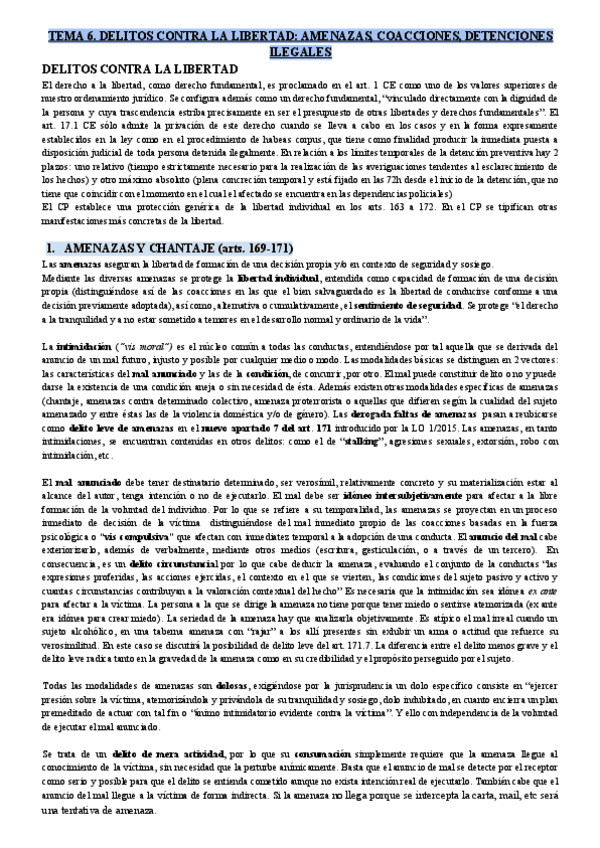 He publicado nuevos apuntes de 2º Tipologies Penals: Tema-6-Delitos-contra-la-libertad-Amenazas-coacciones-detenciones-ilegales.pdf