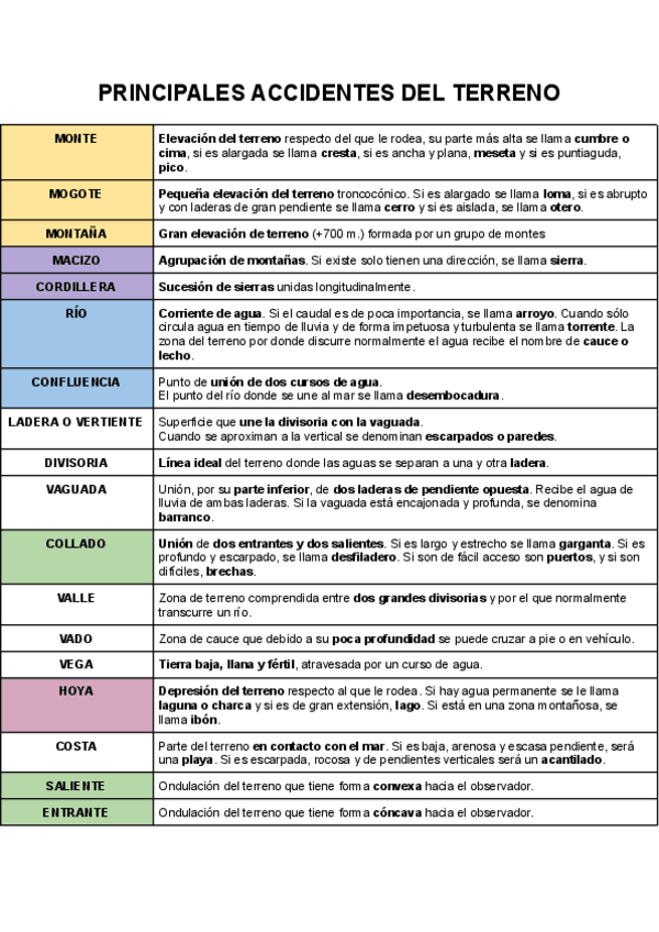 Principales accidentes del terreno