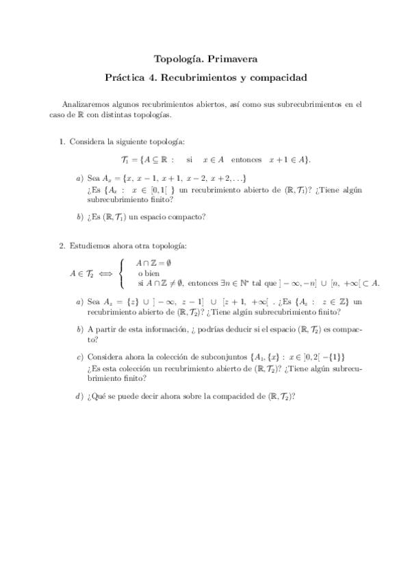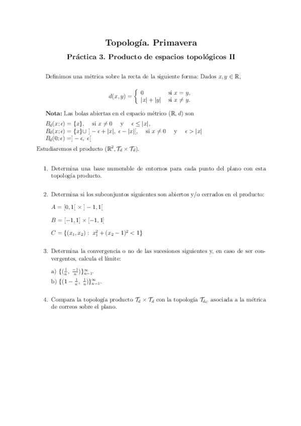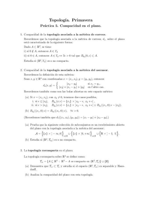 Ejercicios de topología de todos los temas y ejercicios de exámenes