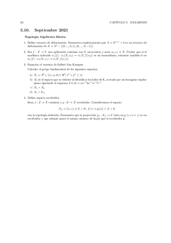 He publicado nuevos examenes de 3º Topología Algebraica Básica: Septiembre-2021 Corregido.pdf