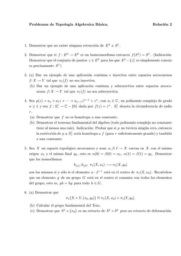 He publicado nuevos ejercicios de 3º Topología Algebraica Básica: Relacion-2.pdf