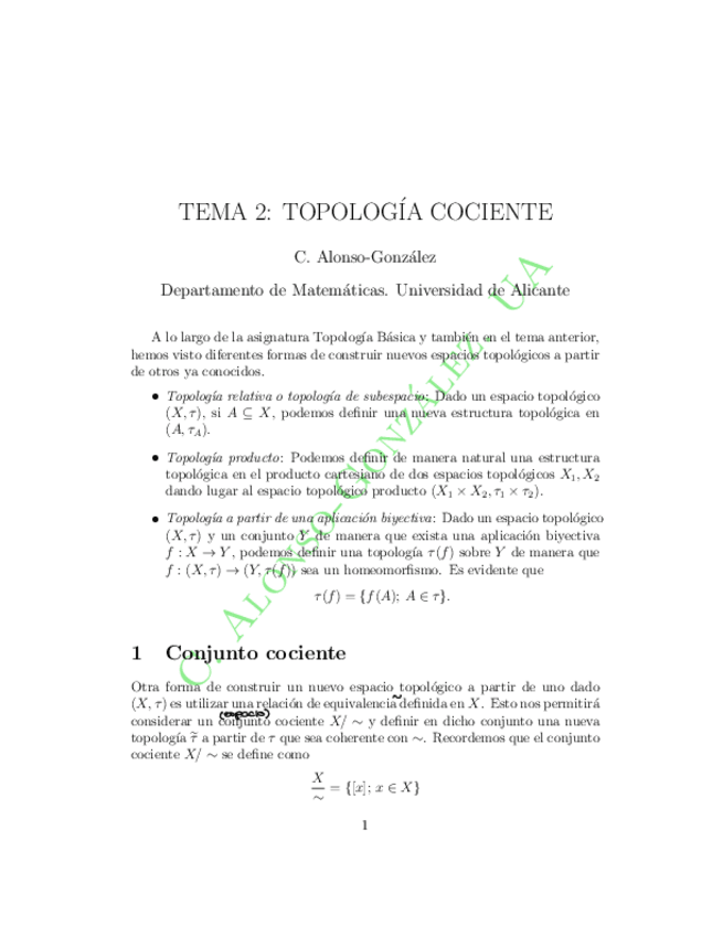 Apuntes de clase del tema TOPOLOGÍA COCIENTE