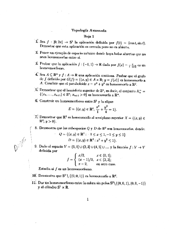 He publicado nuevos ejercicios de 3º TOPOLOGÍA AVANZADA: Tema 1 Homeomorfismos
