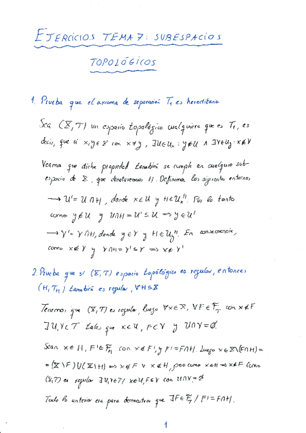 He publicado nuevos ejercicios de 2º TOPOLOGÍA BÁSICA: Tema 5: Axiomas de separación