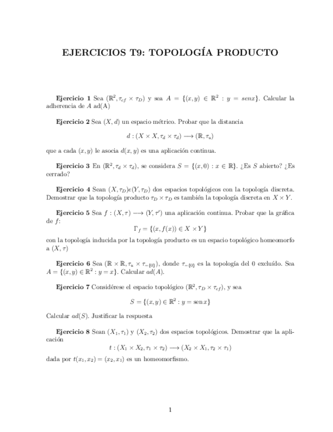 He publicado nuevos ejercicios de 2º TOPOLOGÍA BÁSICA: Tema 9: Topología producto