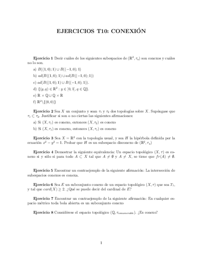 He publicado nuevos ejercicios de 2º TOPOLOGÍA BÁSICA: Tema 10: Conexión