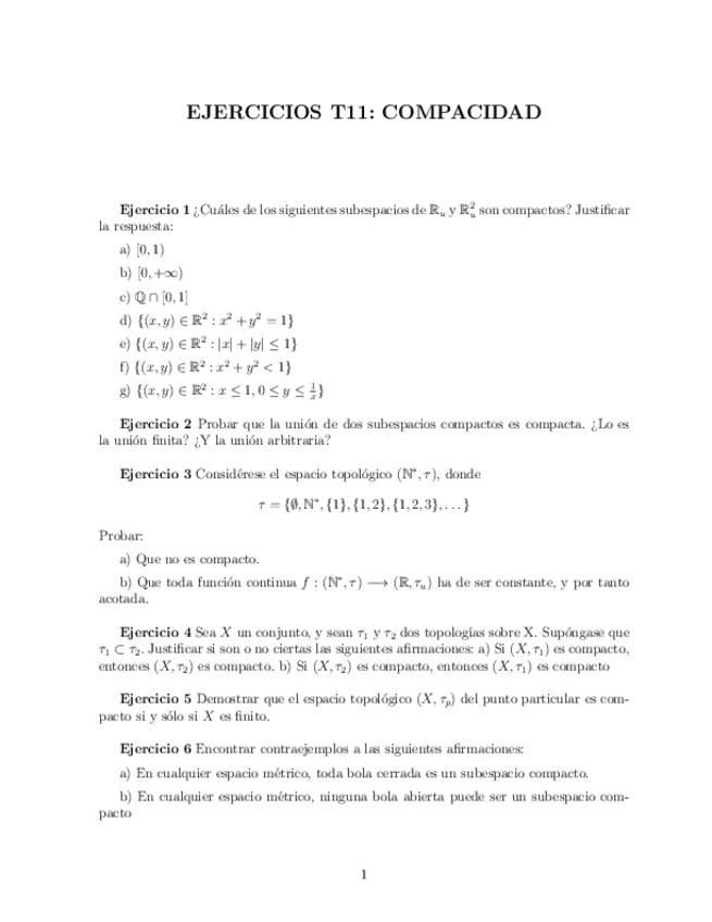 He publicado nuevos ejercicios de 2º TOPOLOGÍA BÁSICA: Tema 11: Compacidad