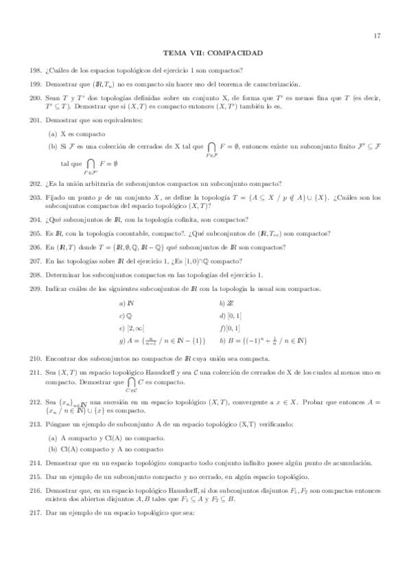 Hojas de Problemas Topologia General
