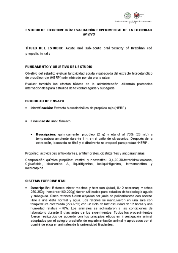 MEMORIAS DE PRACTICAS TOXICOLOGIA 3º CURSO
