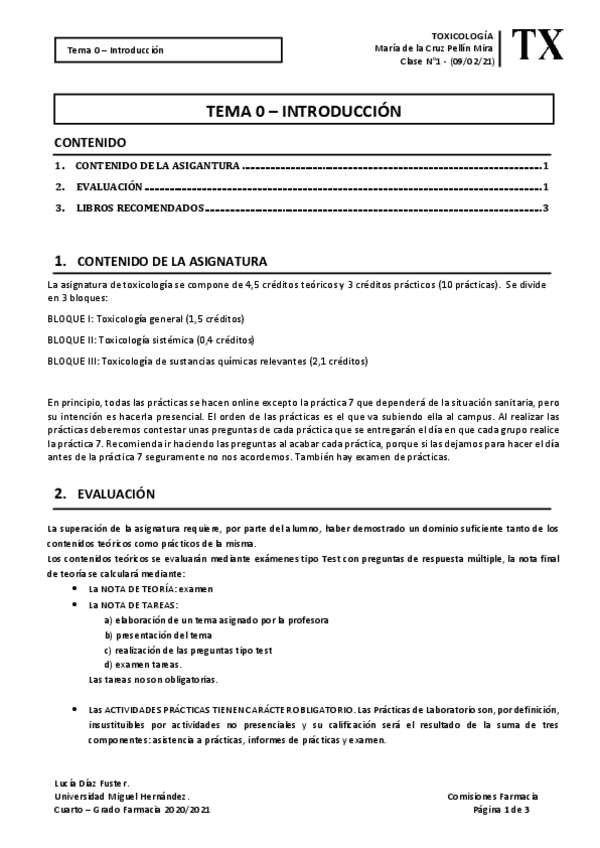 He publicado nuevos apuntes de 4º Toxicología: Comisiones 2021