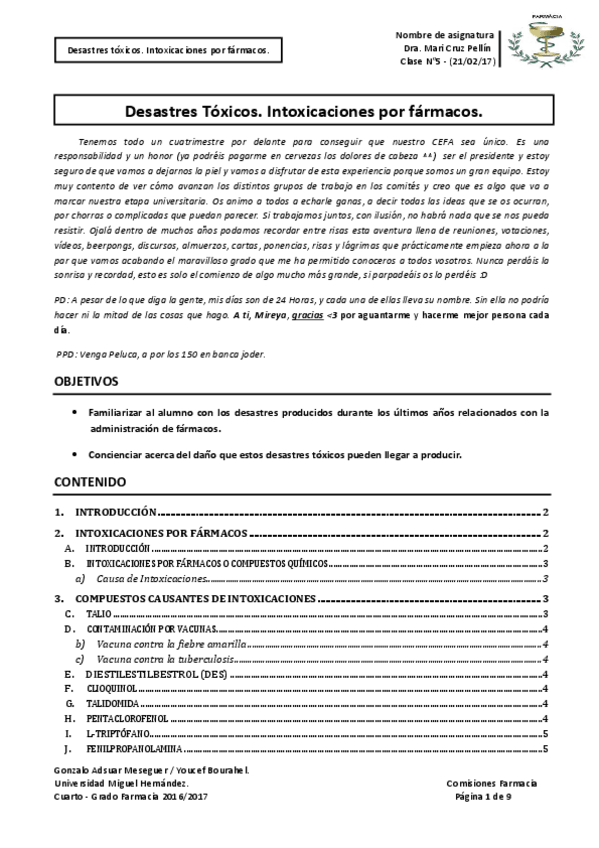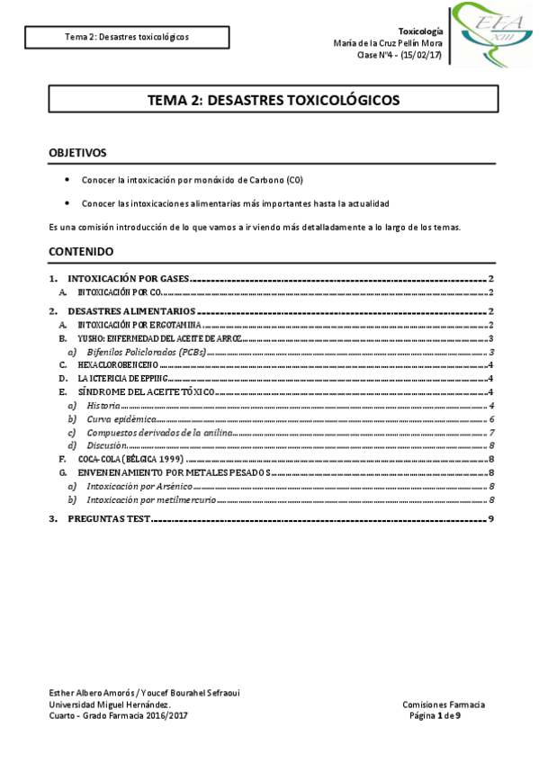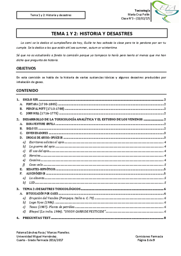 He publicado nuevos apuntes de 4º Toxicología: Comisiones 2019