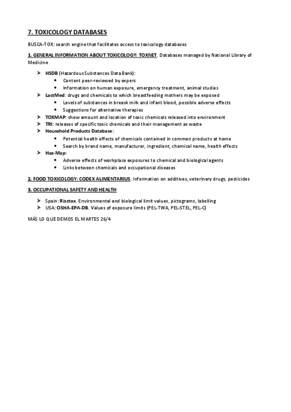 He publicado nuevos apuntes de 4º Toxicología: TOXICOLOGY-SECOND-PARCIAL.pdf