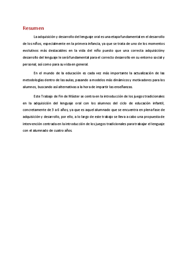 Trabajo Fin de Máster LA ADQUISICIÓN DEL LENGUAJE ORAL A TRAVÉS DE LOS JUEGOS TRADICIONALES EN LA ETAPA DE 3 A 6 AÑOS