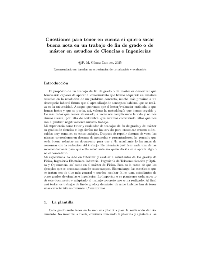 Documento con recomendaciones básicas para obtener mejor nota en trabajos de fin de grado y de máster de Ciencias e Ingenierías