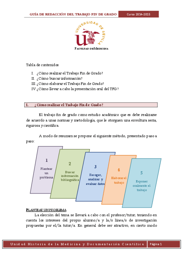 TFG de la primera promoción en medicina de la US con Bolonia, para que pueda servir de guía a las siguientes promociones. Obtuve un sobresaliente con el mismo.