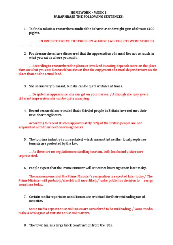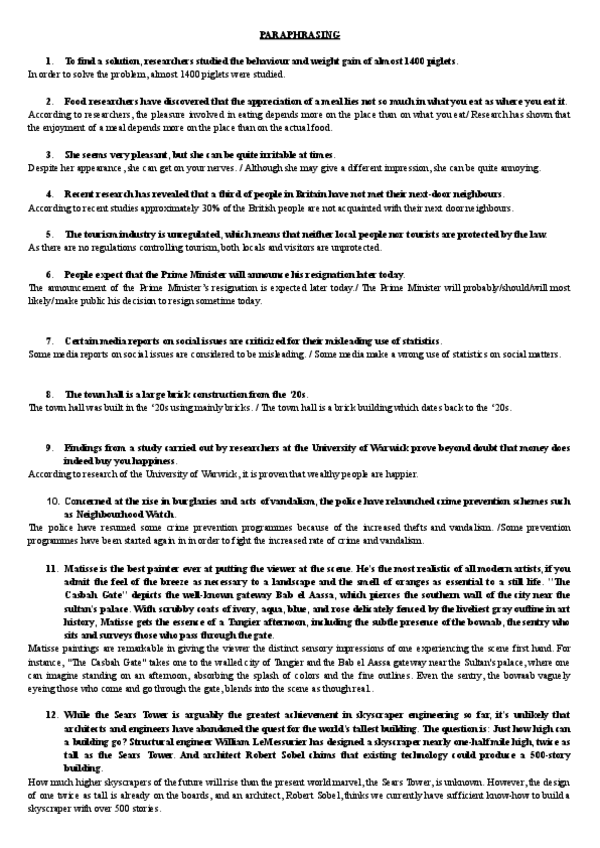INGLÉS BV - PARAPHRASING